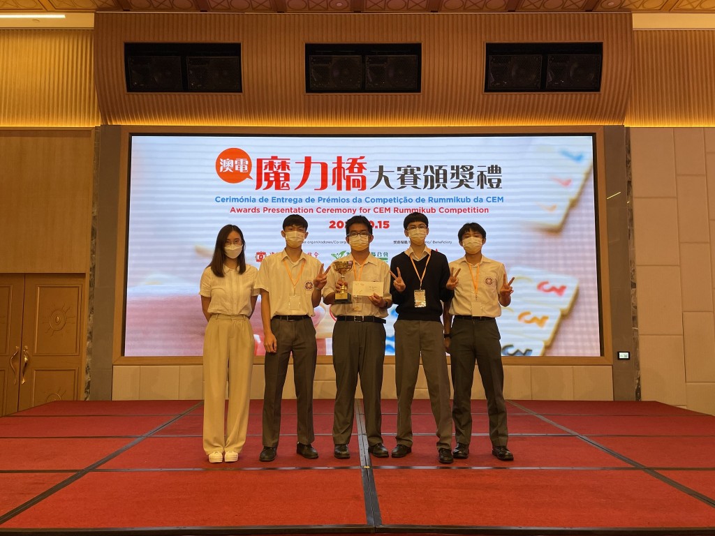 我校同學參加由澳電舉辦第一屆「魔力橋大賽」中學組比賽,經過校內選拔,高三正班李善揚、 陳宇軒、鍾健翔、鄧柏希四位同學為代表,由梁潁妍老師帶隊出賽。其中李善揚同學在小組賽以全勝+339分的最高成績進入總決賽,並最終奪得冠軍!