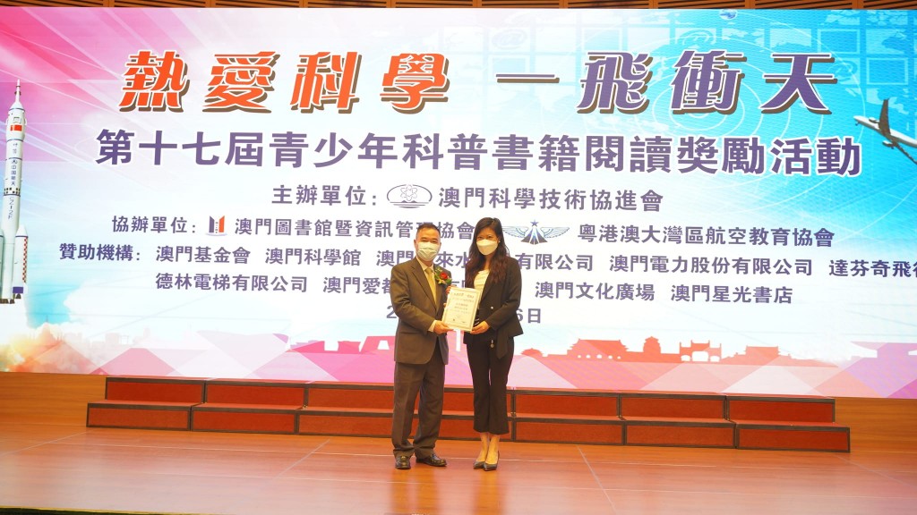由澳門科學技術協進會和澳門圖書館暨資訊管理協會合辦的“第十七屆青少年科普書籍閱讀奬勵活動”頒獎典禮及作品展於今天在科學館舉行。