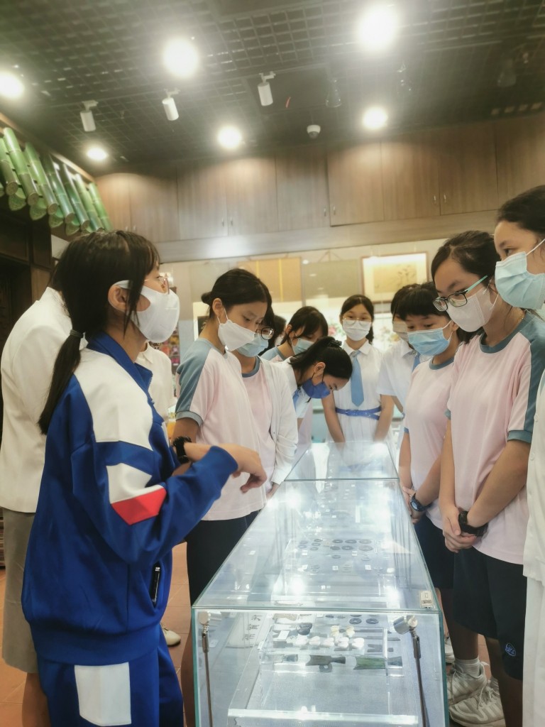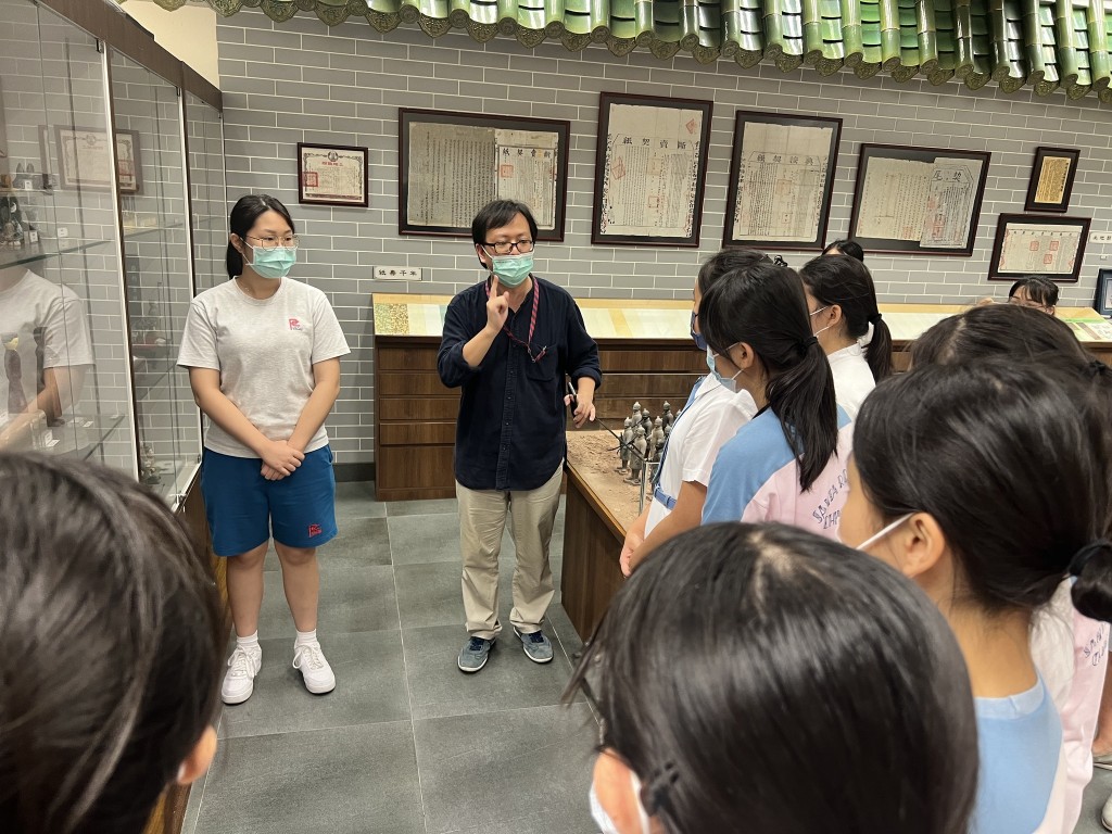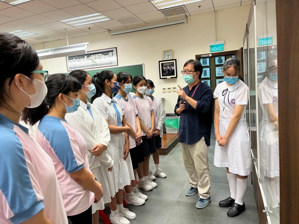 聖羅撒女子中學(中文部)歷史小組一行十五名師生,在謝嘉莉副校長帶領下,昨午課後造訪我校中華文化館,文化館主管鍾春暉老師及四位中學同學(馮卓琳、郭曉嵐、麥子純、陳楚瑜),擔任導賞,向來賓介紹館藏文物。