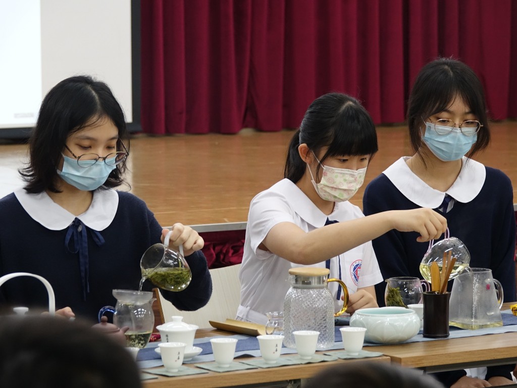 本校茶文化班導師鍾春暉博士,日前應邀到鄭觀應公立學校,為該校中學師生開設「中華茶文化」講座,並安排茶文化班成員麥詠渝(S6C)、梁愫(S6C)、黃淨熙(S5C)、李詠琳(S5C)展示茶藝,講座深獲好評,茶香滿溢。