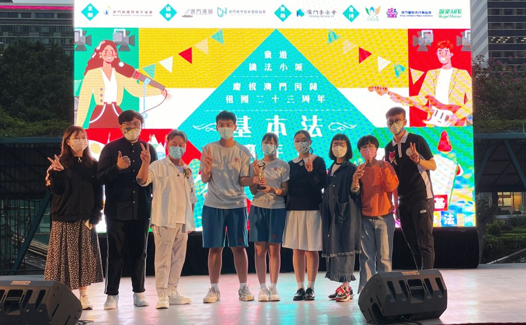 本校圖書資訊社學生(高二信卓子俊、高一善譚鎧宜、鄭舜悅)於11月26日下午參加由澳門無彊界青年協會舉辦之小城攜手《基本法》親子攤位設計比賽,憑藉「基」不可擋攤位榮獲冠軍。