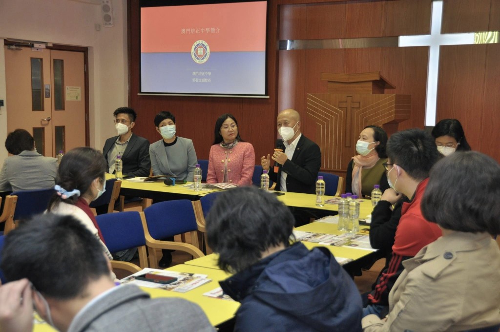 在之後的交流會,郭副校向來賓們介紹本校辦學理念、教育方向、學生發展路向及課程評核等。來賓們亦關注到本校師資、課程框架、零碳學校及創新科教老師培訓等,獲郭副校、陳副校和楊副校逐一詳細解答。交流會尾聲,雙方亦期望增加琴澳師生之間的交流,推動琴澳教育事業高質量發展,來賓們亦邀請本校師生到橫琴參觀交流。