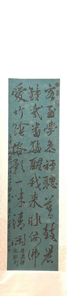 本校中華文化館主管鍾春暉博士的書法作品《普濟禪院聯句》,中學中文科教師張柏恩博士的書法作品《蘇東坡水調歌頭大江東去》,參加第四屆全澳中小學教師毛筆硬筆書法比賽,分別獲得銅奬與入選奬。