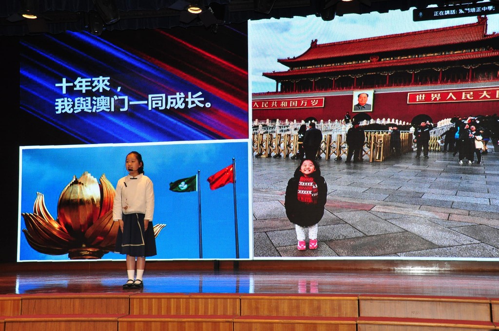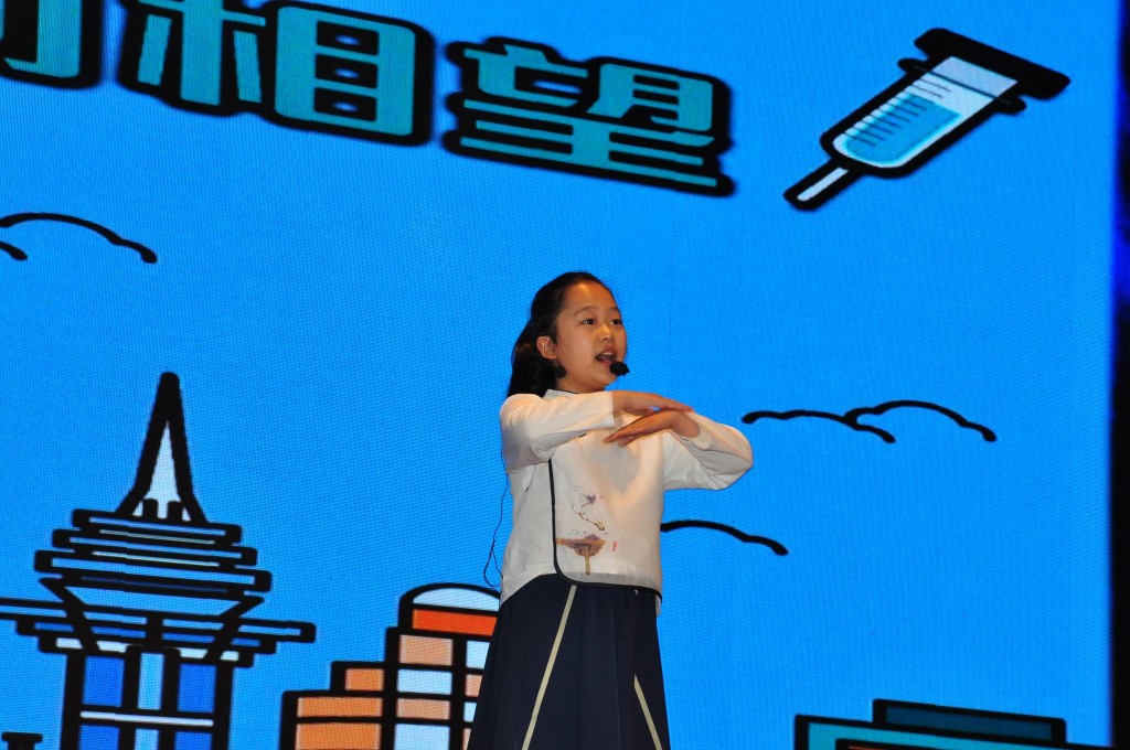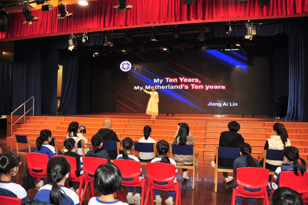 來自三地共九所學校的十六名小四年級學生以「中國這十年‧邁向新時代」為主題,精彩演繹,講述家國情懷。本校小四望江艾霖同學、王妤心同學結合自己的成長經歷,分別以英語、普通話進行演講,聲情並茂地講述了澳門的發展變化,表達了與祖國共騰飛的美好願望。參加的學生均獲得大會表揚及專業點評,對日後提升演講表現甚有幫助。