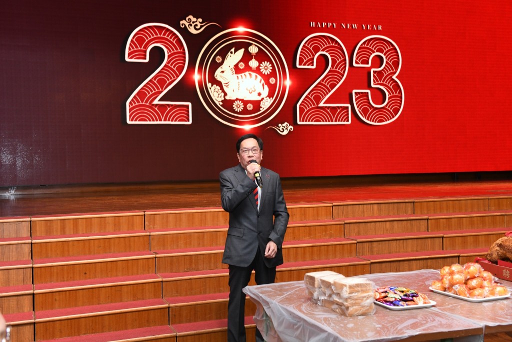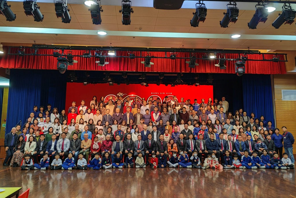 新春假期後復課首日,本校與澳門培正同學會傍晚在禮堂舉行新春團拜,教職員工、校友、退休老師、家長教師會代表、家眷及學生會代表等聚首一堂,彼此問候,場面熱鬧。高錦輝校長和同學會黃漢堅會長先後發言,致以新春祝福,並祝願各位身體健康,闔家安好,恩典滿滿。