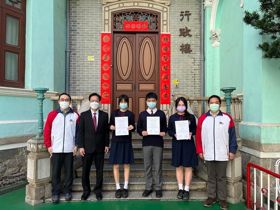 本校高三信張靖坪、陳翠瑩、馬志沛同學參加2022年丘成桐中學科學獎(經濟及金融建模),在本校中學數學科、廣東省初等數學學會副會長薛展充老師連續多月來在有關數學、經濟學、博弈論等多方面的指導下,進入亞洲賽區五強,本校為其中唯一澳門隊伍,最後在答辯階段中獲榮譽獎。
