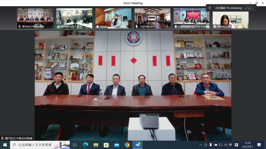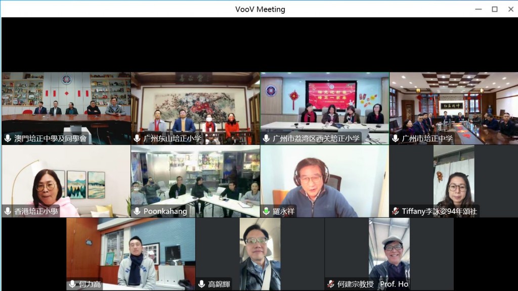 穗港澳三地培正學校及同學會今天下午三時聯合舉行新春線上團拜。出席者包括廣州培正中學張志紅校長、王敏書記,東山培正小學葉志丹校長、黃曼君書記,西關培正小學陳容校長,香港培正中學何建宗校監、何力高校長,香港培正小學石麗芬副校長,澳門培正中學羅永祥校監、高錦輝校長,廣州培正同學會藍唯副會長,香港培正同學會劉詩韻會長,澳門培正同學會黃漢堅會長,以及各校及同學會的一眾代表,陣容鼎盛。