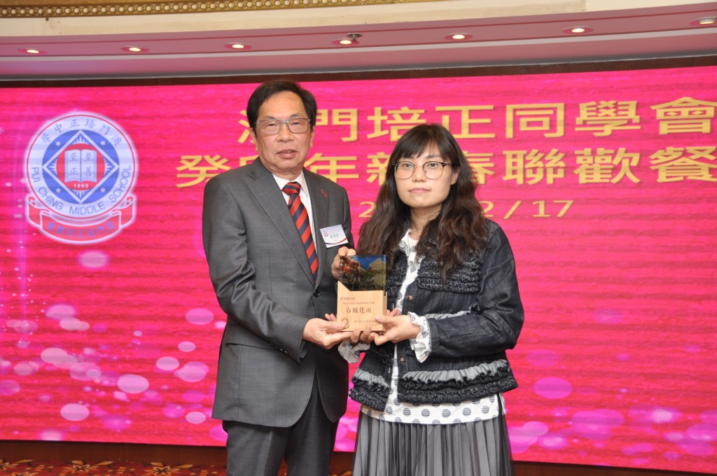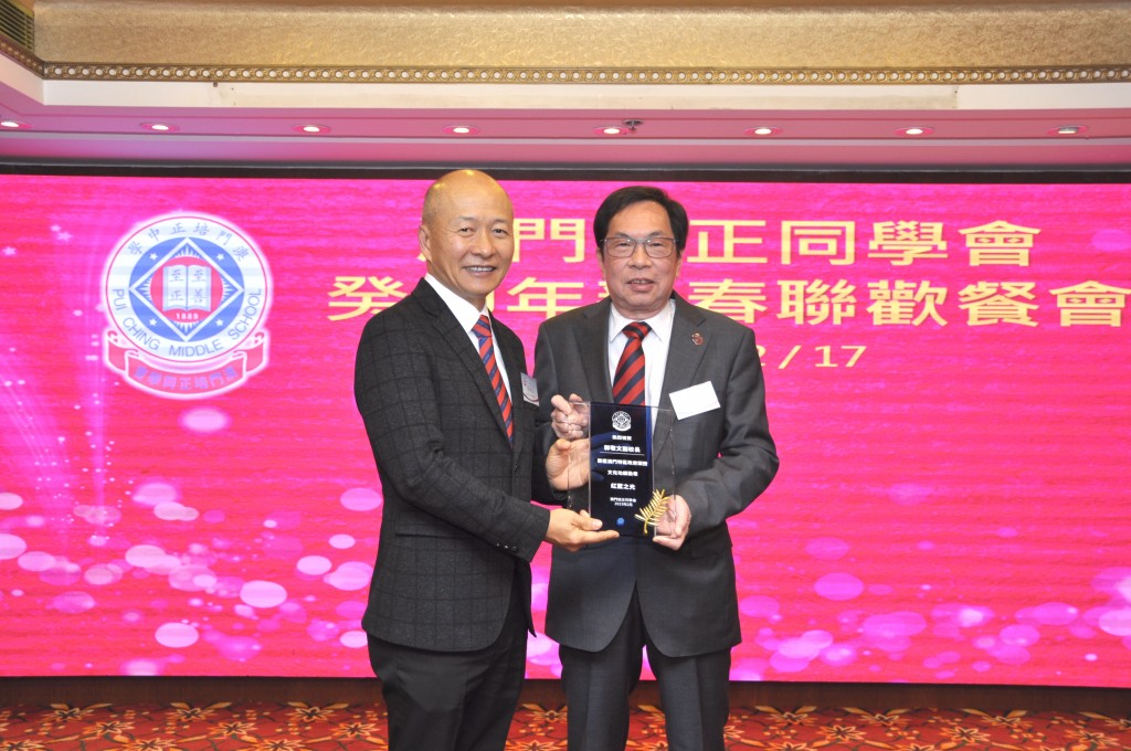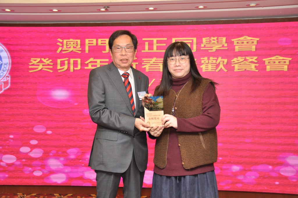 澳門培正同學會今晚(17日)舉行新春聯歡餐會,本校羅永祥校監、高錦輝校長、郭敬文副校長及楊珮欣副校長出席,與同學會一眾代表、嘉賓、校友、教職員工及退休老師等共慶新春,場面歡欣熱鬧。席間,同學會黃漢堅會長向榮獲文化功績勳章的郭敬文副校長、獲卓越老師榮譽的黃慧儀老師及方秀娟老師致送紀念座敬賀。