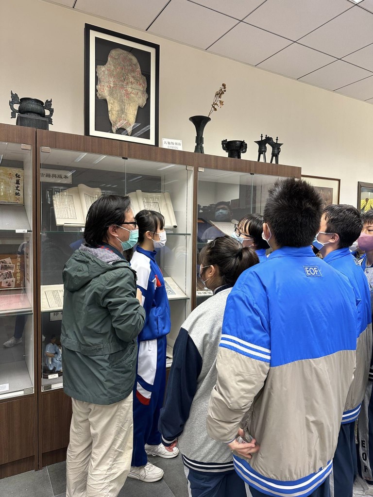 上周五早上,二龍喉公立學校王培梅校長,帶領師生一行二十餘人,來訪文化館。初一善陳楚瑜、初三愛鄭嘉裕、高一善周子瑩、高二善陳芷穎和高三善馮卓琳,為來賓作精彩介紹,賓主盡歡顏。