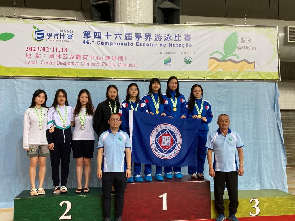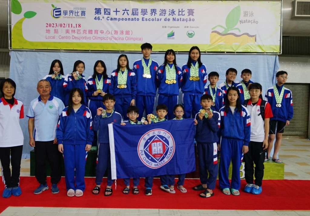 第四十六屆全澳學界游泳比賽於2023年2月11及18日連續兩個週末在澳門奧林匹克游泳館舉行。總結今屆學界游泳賽兩場賽事的成績,我校泳兒們共獲18金、17銀、12銅,共47面獎牌,破4項大會記錄的優異成績。