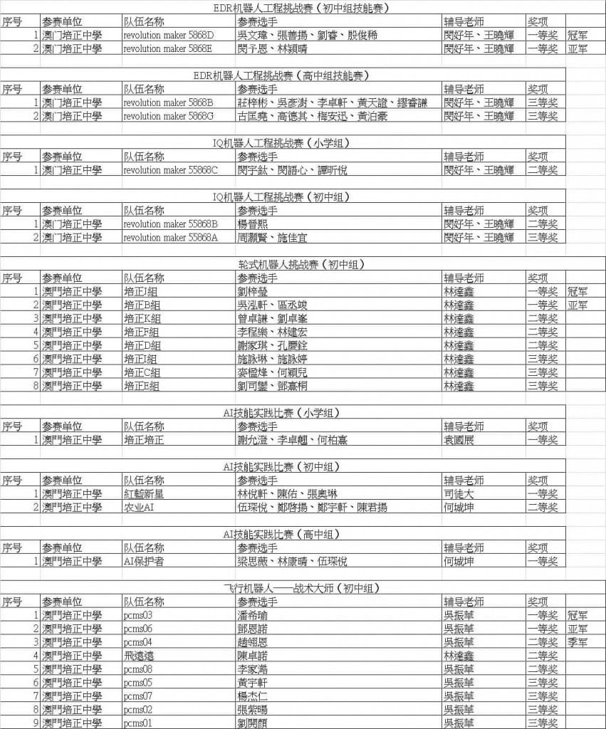 本校閔好年、王曉輝、林達鑫、吳振華、何城坤、司徒大、袁國展獲得優秀輔導教師獎,以及本校榮獲優秀組織單位獎。