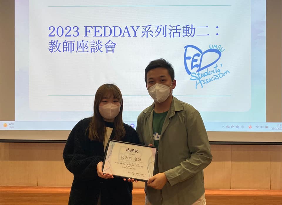 本校柯志華老師應澳門大學教育學院學生會邀請,於2月25日參加「2023 FEDDAY教師座談會」作分享。期間與教育學院教育專業在讀學生分享教師的價值,以及現今教師應具備的素質和技能。教育工作者任重道遠,柯老師亦從自身經歷出發,與與會者分享教學點滴。