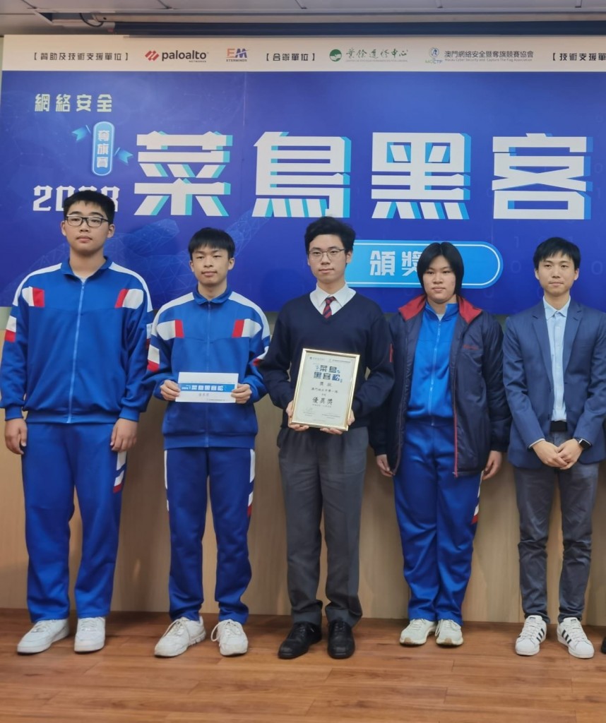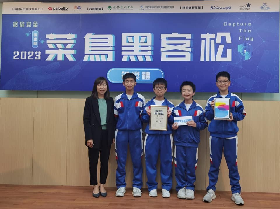 人工智能技術發展一日千里,成為引領時代發展的一個重要因素,同時也為我們帶來前所未有的挑戰與機遇。科技發展離不開網絡安全,它不但對社會同時對國家安全的發展也有重要的影響。我校在網路安全培養方面表現突出,積極透過不同的平台,幫助同學在網絡安全及科技創新領域上行得更遠!努力為澳門及祖國貢獻一份力量。是次賽事由盧聖生老師和林秀蘭老師帶領。
