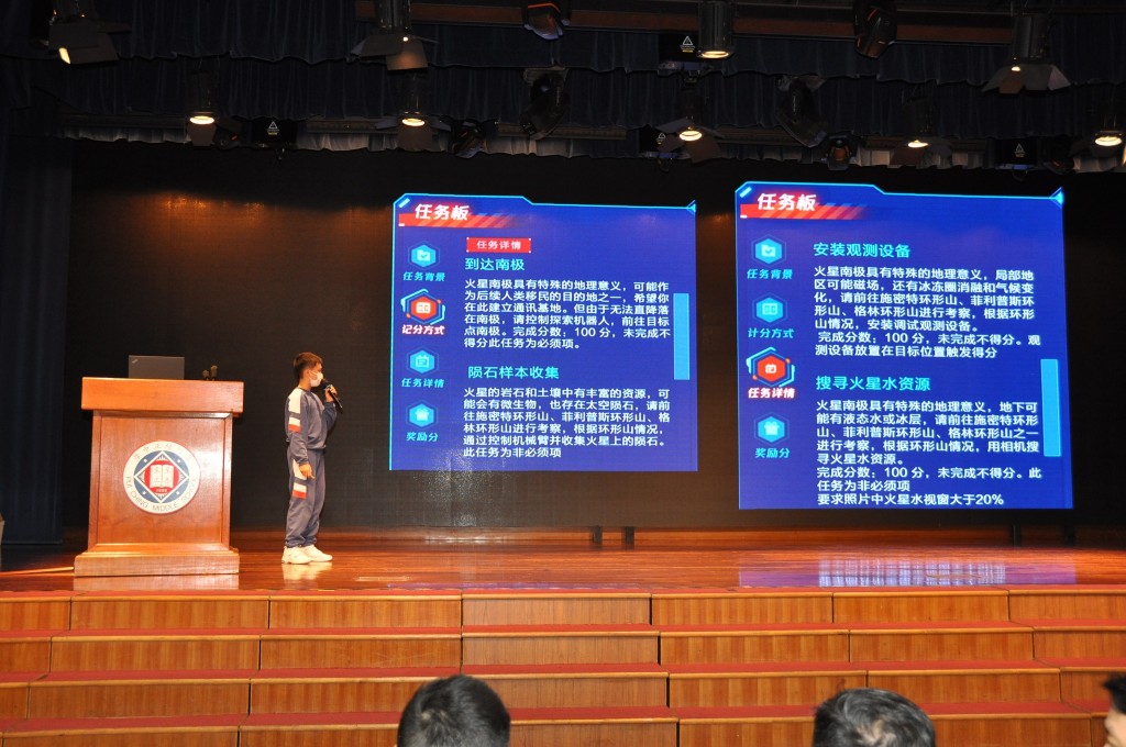 賽事基於騰訊扣叮虛擬模擬實驗室打造了”火星探索”主題活動,此項主題對於編程、火星科普、機器人等知識的瞭解和學習。賽事基於火星背景設定,學生需要在其中通過編程的方式、應用機器人和人工智能等相關知識,自主規劃路線、完成科研探索任務挑戰。在賽項中,根據真實科研任務設計了火星隕石樣本採集、尋找火星水資源、安裝火星觀測設備等多個任務。學生可以在平臺通過編程,完成對機器人的動作控制、巡線避障、路徑規劃,AI識別控制物、物體抓取與運輸等動作,在火星場景內完成對應的火星探索任務。