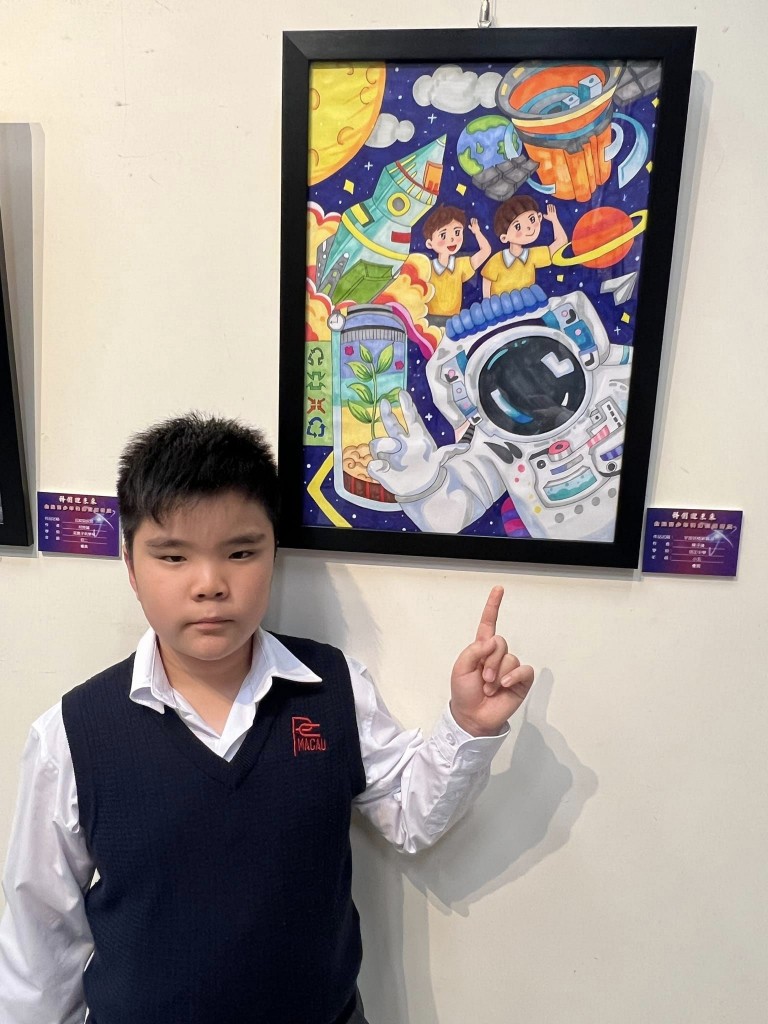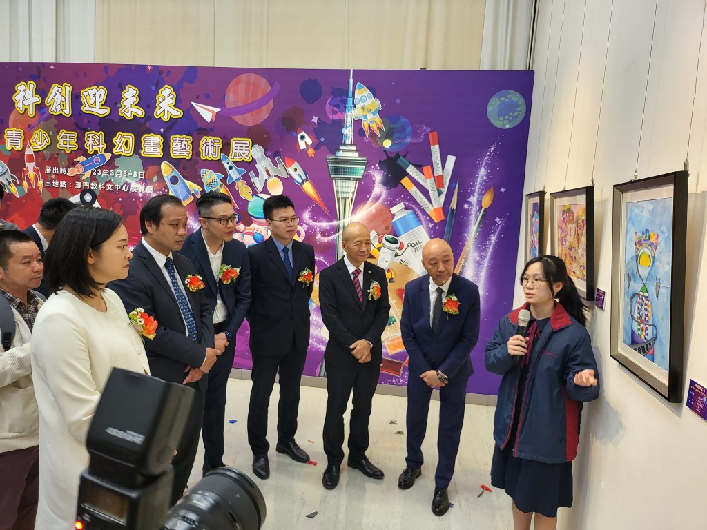 今午,本校學生參加由澳門美術教師交流協會舉辦的「科創迎未來-全澳青少年科幻畫藝術展」開幕式及頒獎禮,郭敬文副校長擔任展覽剪綵嘉賓。