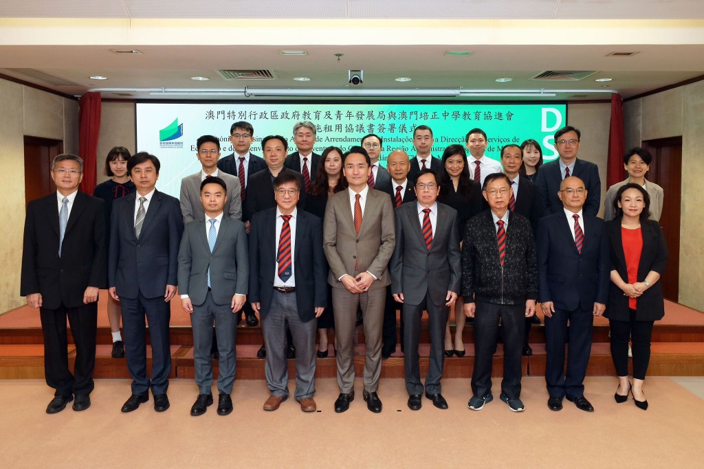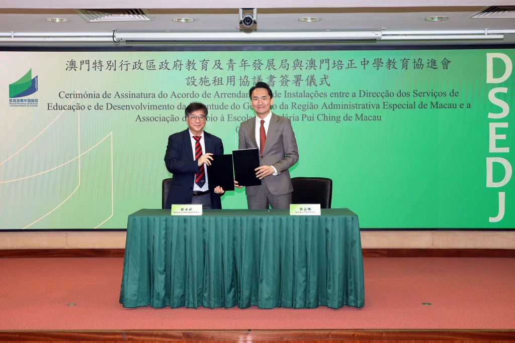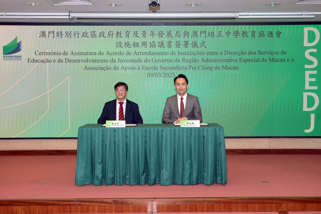 澳門特別行政區政府教育及青年發展局與澳門培正中學教育協進會今早11時舉行設施租用協議書簽署儀式。
