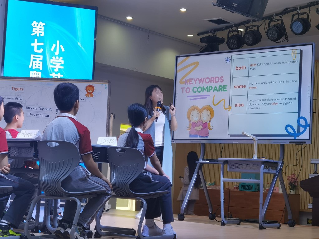 會上,鄭嘉麗老師擔任公開課嘉賓,以“Reading Skill - Compare and Contrast”為題,向36名小五學生授課。本課堂體現了本校對學生閱讀策略培養的重視,鄭老師先以學生熟悉的題材作為切入點,其幽默及親和的教態,讓學生瞬間投入課堂,過程中也設置了不同的小組活動,由淺入深,讓學生成為課堂的主角,從實作中去學習、從合作中去成長。此次公開課獲得在場專家和老師們的高度表揚和肯定,鄭老師也從中獲益良多。