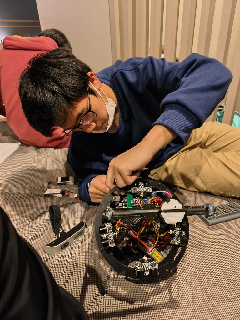RoboCup世界盃機器人足球賽是一項國際性的機械人足球競賽,是中學生影響力最大及最大型賽事之一,旨在推動機器人技術和人工智慧的發展。在賽事中學生需要針對任務及情境,由底板開始自行設計機械人,本次參賽的三位同學利用solidworks為機底進行繪圖,再利用水刀對板材進行切割,最後再搭建好機械人,再為機械人量身定制程式。