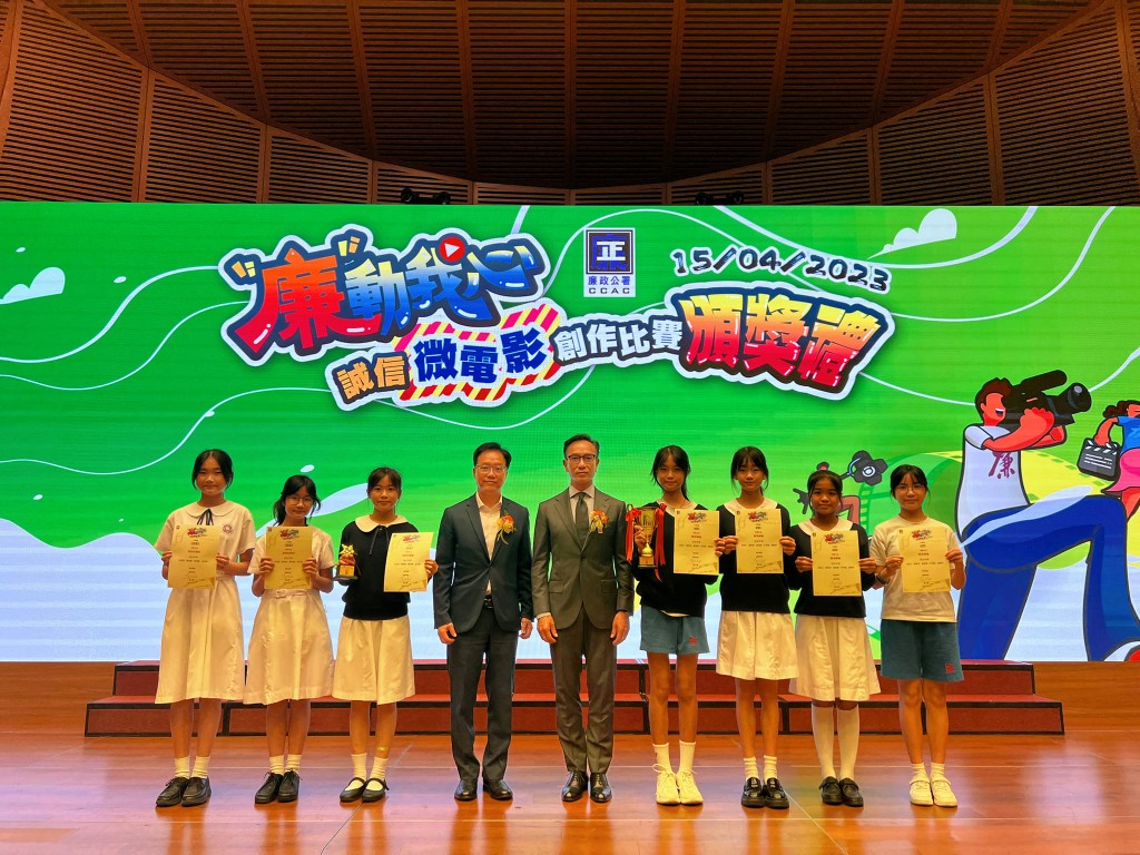 由澳門特別行政區廉政公署舉辦「廉動我心——誠信微電影創作比賽」,讓青年藉創作過程主動深思誠信議題,並透過影像與大眾分享其對誠信廉潔的想法,以創意作品感染及鼓勵朋輩,積極為澳門的廉政建設發揮所長,比賽分中學組及大專組別,今午舉行頒獎典禮,本校共四部作品入圍,其中紅藍演藝B隊(初一級:吳洛澄、鄭董穎、簡玥翹、袁芷臻)憑短片《我的好姊妹》獲頒優異奬,紅藍演藝C隊(初二級:吳詠心、羅焯詩、蕭嘉穎、李莘越、湛曉澄)作品《數學神偷》榮獲季軍。