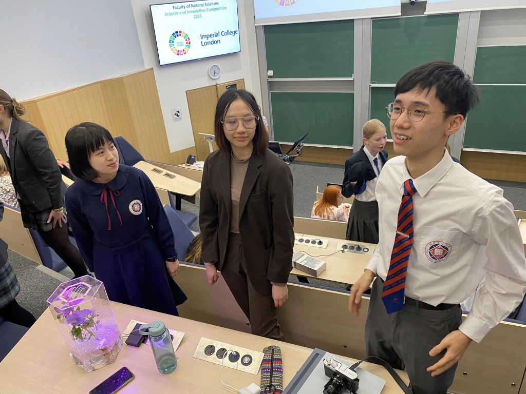 二零二二年十二月通過全球初賽後,師生一行本周初抵步倫敦帝國理工參與Imperial College London Innovation Competition決賽。經過一連串演示及答辯後,打入最後三強。比賽競爭激烈,成績得來不易。高二信黃浩政,高二望馮佑楠、高一望劉千悅、初三愛趙樂旻、高一望朱安祁、高一善石悅瑩表現出色,在陌生環境對答自如,從容面對評審和其他隊伍的提問。