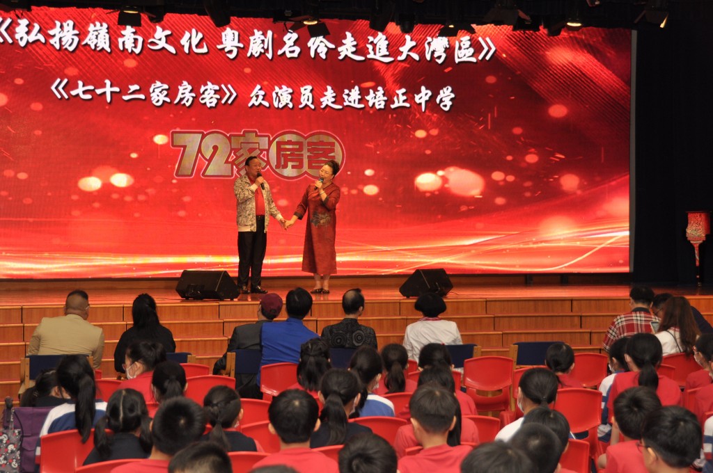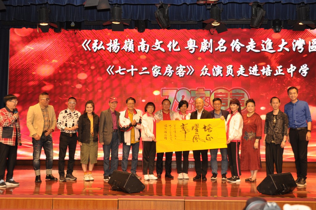 廣東本土大型粵語情景電視喜劇《 七十二家房客》一眾演員今午走進校園,以曲藝、吟誦、書法、口琴等,與小四級學生打成一片,弘揚嶺南文化,促進灣區文藝傳承。