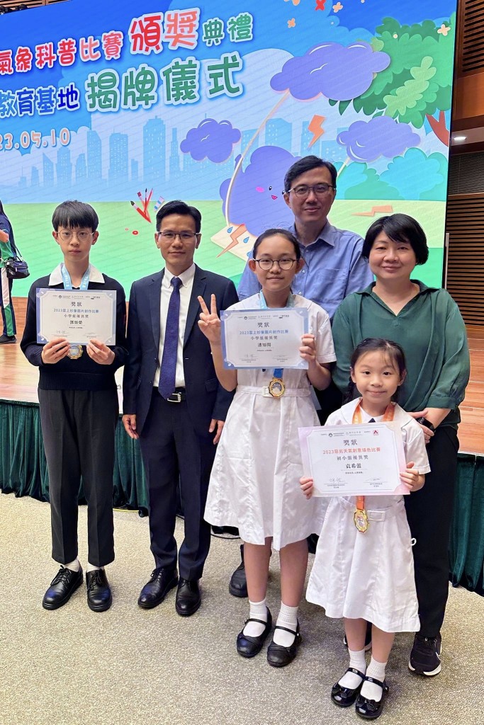 由地球物理暨氣象局與澳門科學館合辦的“賞雲.識天”氣象科普填色比賽及圖片創作比賽今日下午頒獎。小一正袁希蕾同學獲“惡劣天氣創意填色比賽”初小組優異獎,小四正潘知閒及小六信鄧頌榮同學獲“雲上妙筆圖片創作比賽”小學組優異獎。