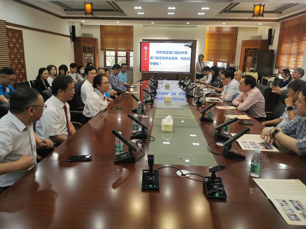 隨後,訪問團前往廣州培正中學,參觀了歷史悠久的校舍建築,並與該校王敏書記、張志紅校長等進行交流,共同表達了穗澳培正同氣連枝,繼續加強兩校各領域團結合作的決心。
