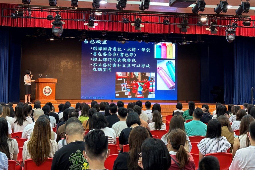 今天早上,本校在禮堂舉辦「與你同行,升小一校園生活適應」的講座,由馮少嫻主任、黃潔冰主任和謝佩珊社工分享,講述幼兒在新環境中適應、學習和成長的資訊,約200位家長出席。