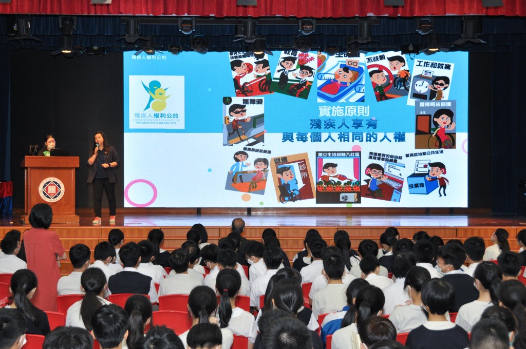 今早,澳門扶康會到訪本校,為初一、二年級的學生進行《殘疾人權利公約》學校推廣融入社區計劃。會上,本校高錦輝校長及澳門扶康會理事會副主席黃濠先生簽署合作備忘錄,共同為構建關愛共融社會而出力。