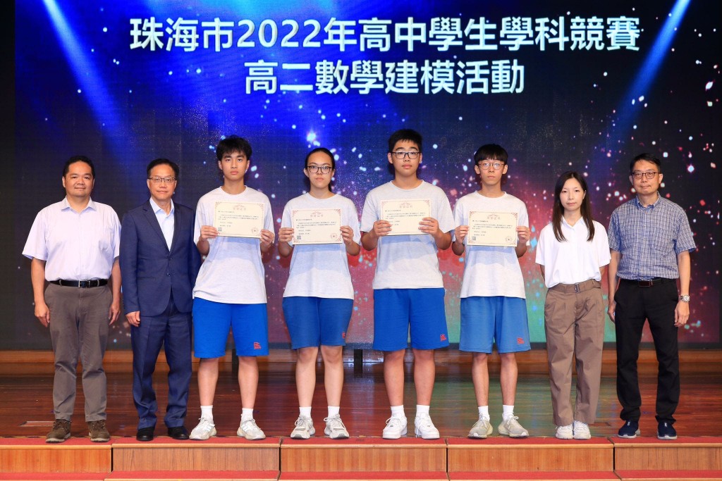 該活動是珠海市2022年高中數學競賽的一部分,競賽採用筆試的形式,經過珠海各校選拔和報名,共有八支團隊,和特邀的澳門培正中學一個團隊參加。本校隊伍由林煜翔、朱嫣然、陳瀚霖、左思源組成,指導老師為李月婷。