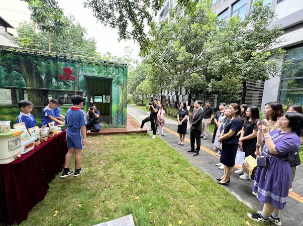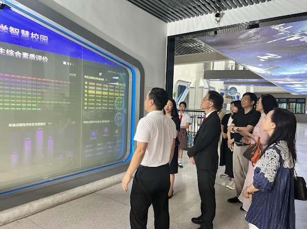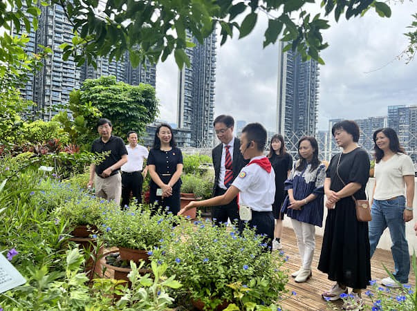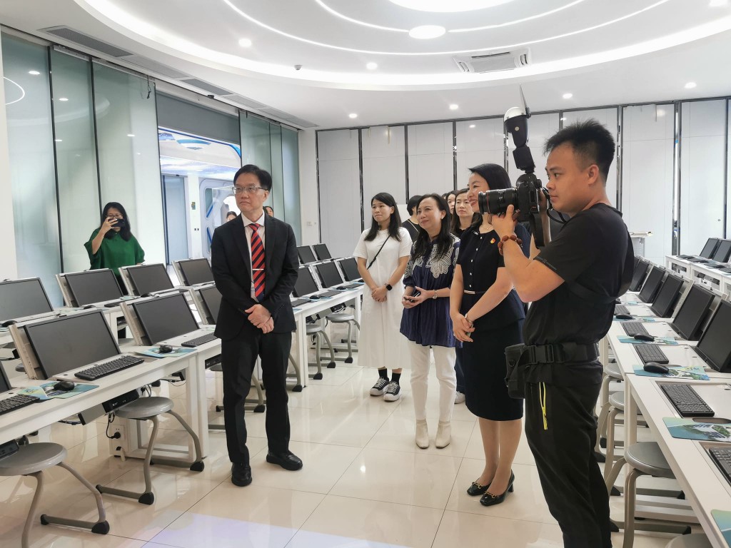 高校長一行參觀香山里小學的智慧校園建設,欣賞該校學生的手風琴演奏及中國民族舞表演。小學中文科教師觀摩功能性寫作課例教學,與到場指導的專家周子房博士及香山里小學教師,約定未來加強交流,互派師生,深入教學現場,共研小學中文寫作教學數字化和智能化的發展藍圖。