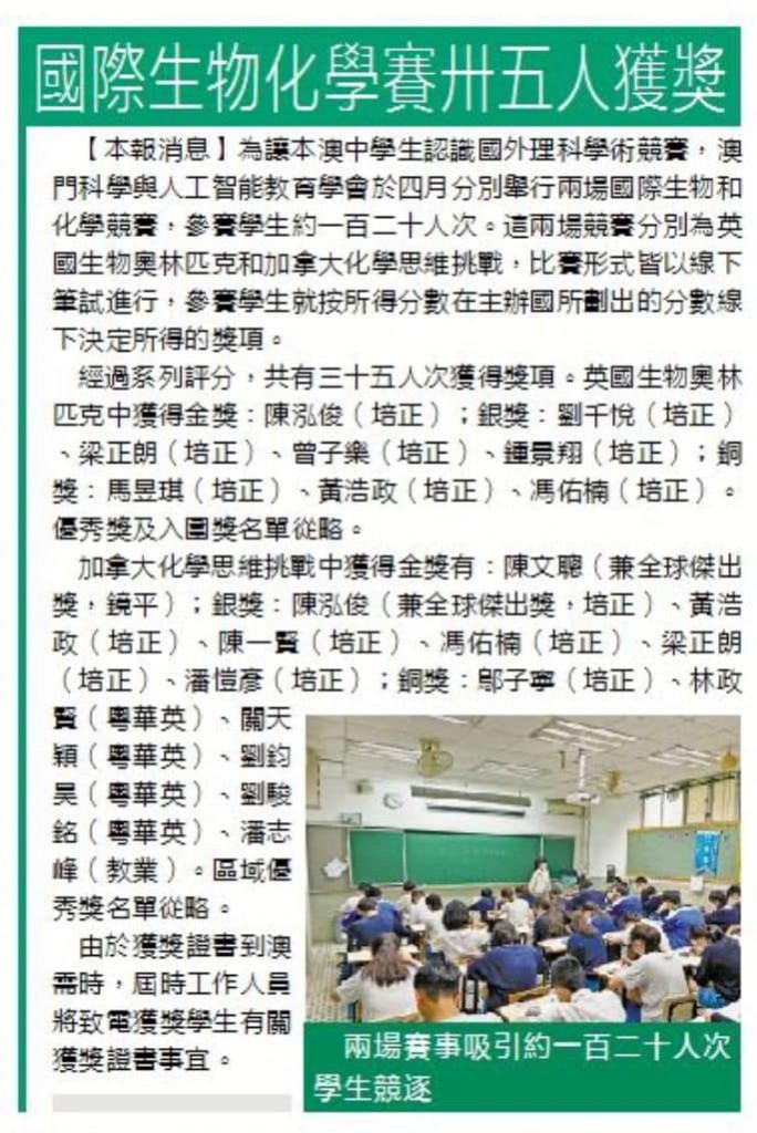 2023年加拿大化學挑戰賽經同學們努力,今年獲奬同學數目比去年增多,得奬名單如下: