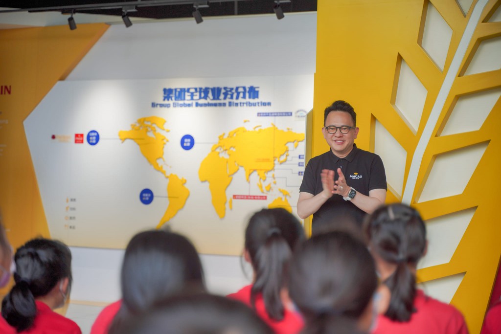 全國政協委員、澳門啤酒有限公司聯席董事長蔡明威先生熱情接待。參觀中,學生們聆聽澳門啤酒公司品牌歷史、了解啤酒釀造材料、生產工藝、從原料到出廠的生產全過程,學習相關環保知識。