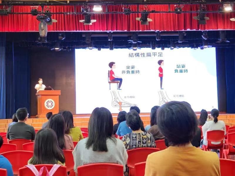 「扁平足」是成長期兒童常見的足部問題,不但會影響兒童日常行路,若不及早發現和處理,日後兒童可能會出現膝部、腰背部及脊椎等的健康隱患。為增加家長對兒童足部健康的重視及認識,本校邀請了澳門復康會來校,為幼高至小三級近800位同學進行足部篩查,並於上周六(6月24日)早上舉辦一場「穩步樂活——健康從足部開始」講座,主講者為澳門復康會李善鈴物理治療師。