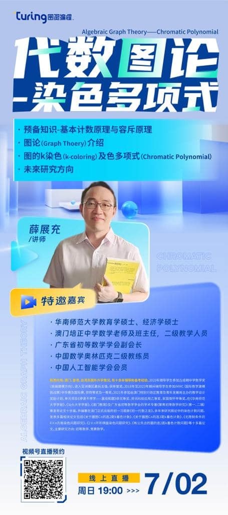 本校中學數學科薛展充老師獲廣東省初等數學學會邀請,於7月2日作題為《Algebraic Graph Theory——Chromatic Polynomial 》的線上講座。