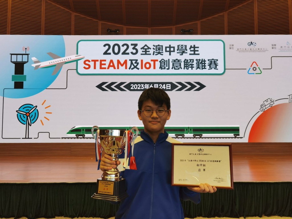 由生產力暨科技轉移中心主辦的“2023年全澳中學生STEAM及IoT創意解難賽頒獎禮”,早前於澳門科學館會議廳舉行。 我校初三信施懿軒與李泓熙榮獲初中組亞軍。