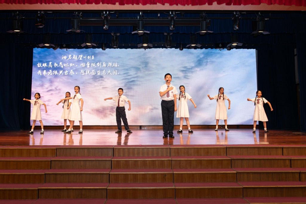 此外,本校小學舞蹈隊以兒童舞《雛鳥歡歌》在日前的校際舞蹈比賽中獲得最高級別的優異級獎項,亦在今天為來訪的東山培正小學師生家長呈獻,贏得了熱烈的掌聲。