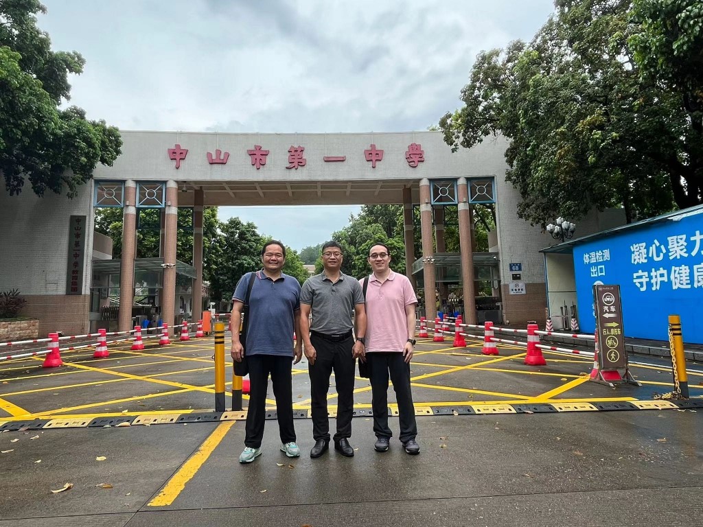 7月18日,本校數學科科主任胡俊明、薛展充老師受邀到中山市第一中學參觀交流,獲中山一中數學科科組長蔡遠光接待。