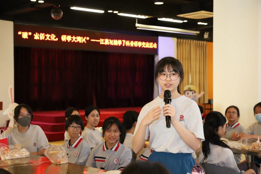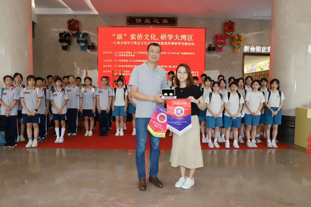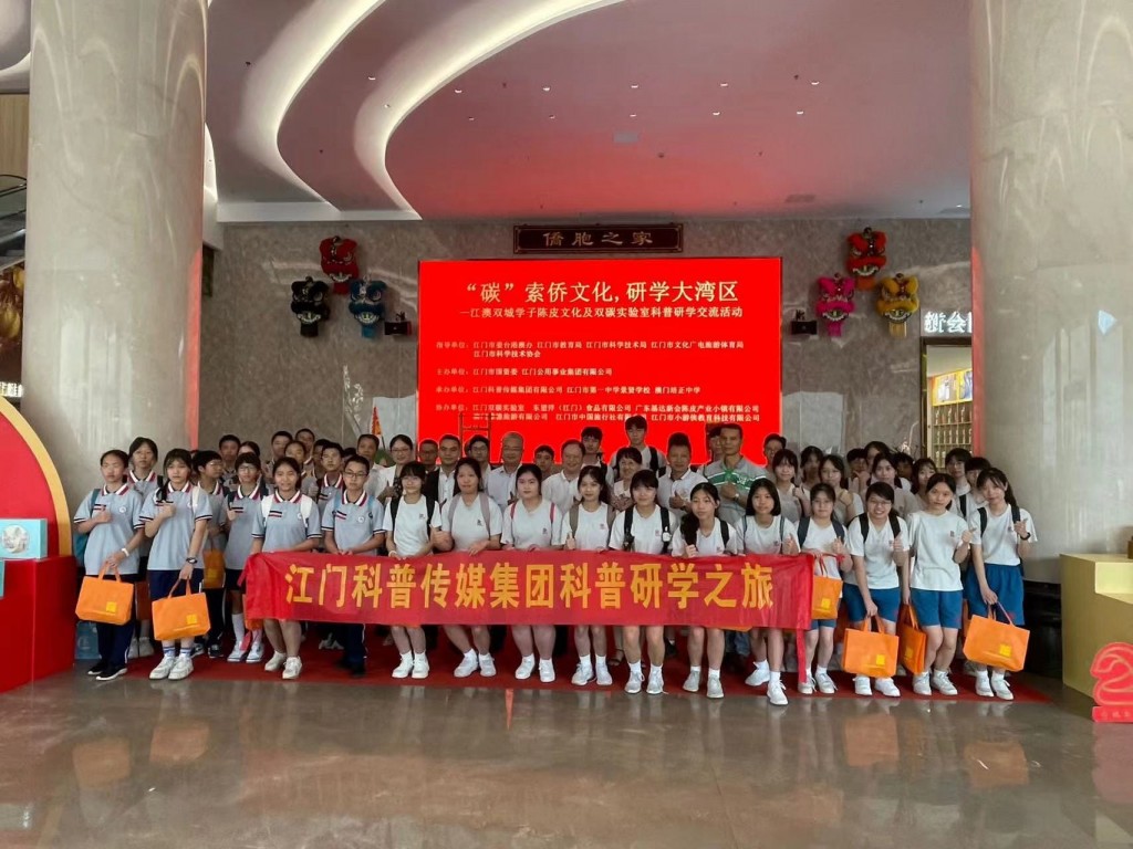 7月21日,本校組織30名師生到江門參加由江門科普傳媒集團開展主題為「『碳』索僑文化 研學大灣區」的江澳雙城學子科普研學交流活動。活動由姚曉暉老師、梁瑩瑩老師帶隊,我校師生與江門市第一中學景賢學校的20名師生在上午一同參觀陳皮產業小鎮及雙碳實驗室,聆聽了「二氧化碳的資源化利用」的主題授課,並進入二氧化碳農業利用實驗田,深入瞭解如何通過科技創新促進現代農業高質量發展。