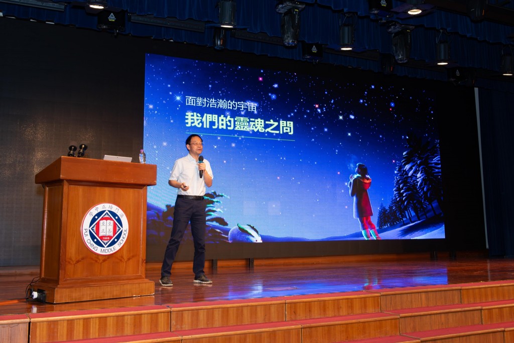 武院士從宇宙起源開始,深入淺出地介紹了宇宙大爆炸理論和宇宙演化的過程。他引導同學們思考生命的起源,特別是地球上生命的演化過程,並提到了地球以外生命的可能性。他用簡明扼要的語言和富有啟發性的例子,讓師生們對宇宙的複雜性和無限可能性有了更深入的理解。在答問環節中,同學們藉此難得的機會踴躍發問。他們關注到地球和人類的未來、地球的替代品,以及現今我國和其他國家在太空科技方面的長短板,獲武院士耐心細緻地一一回答。