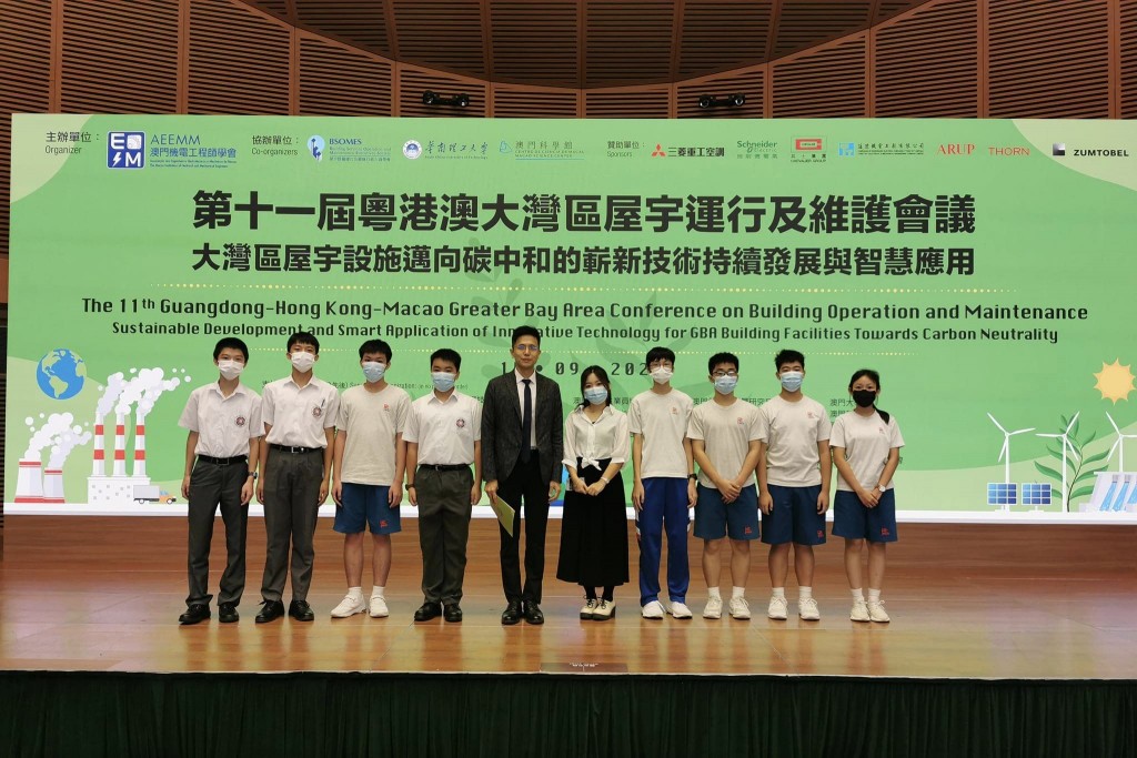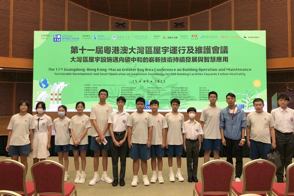 本校陳敬濂副校長、曾玉金老師和田坪老師,帶領共廿一位學生,出席由澳門機電工程師學會主辦的第十一屆粵港澳大灣區屋宇運行及維護會議。是次會議以「大灣區屋宇設施邁向碳中和的嶄新技術、持續發展與智慧應用」為主題,邀請多名本地和外地學者作專題報告。本校為是次會議的支持單位之一,亦是唯一的中學支持單位。是次活動令師生們增加了對屋宇設施工程範疇中碳中和技術和應用的了解,認識到相關技術的發展情況和前景,獲益良多。