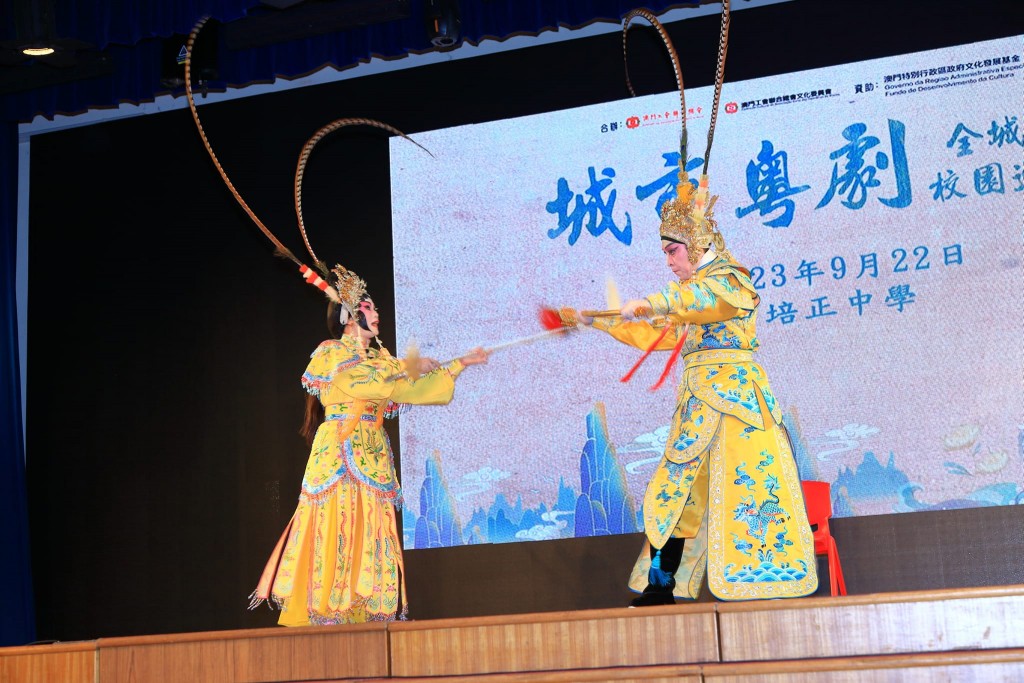 「城市粵劇 全城·傳承」校園巡演推廣活動日前在本校舉行,粵劇界老師鄧華超和黃梅芬先上演了佘賽花折子戲,接著展示了粵劇的「唱、做、唸、打」基本功。同學們積極參與上台試演等互動環節,以多樣化且生動活潑的形式宣揚粵劇文化,同學們獲益良多。