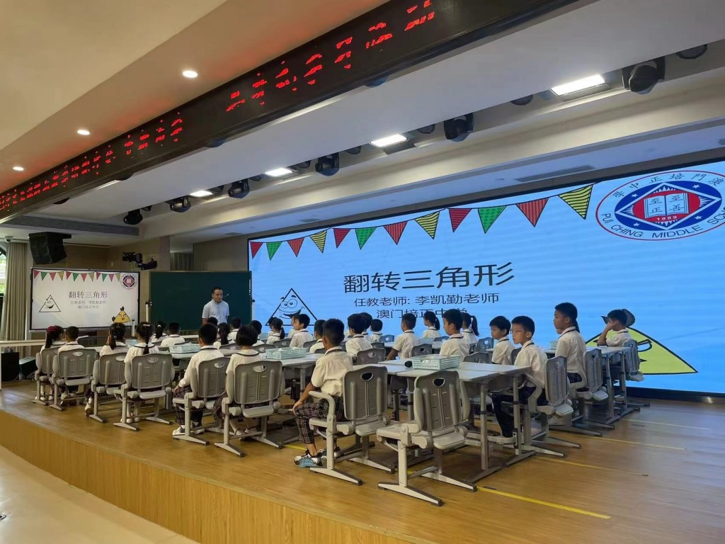 2023年東亞課程與教學研究年會於10月13日在珠海市首都師範大學橫琴伯牙小學舉行,是次年會以「變教為學——具身式學習活動設計與實施」為主題,邀請了全國多個省市以及日本的教育專家及老師參與。我校陳敬濂副校長、李凱勤老師、劉詩敏老師受邀參與是次年會,獲益良多。其中陳敬濂副校長獲邀為國內老師展示的公開課進行點評,而李凱勤老師在年會上,結合動手活動和電子學習,展示了一節名為「翻轉三角形」的公開課,獲得專家們一致好評。