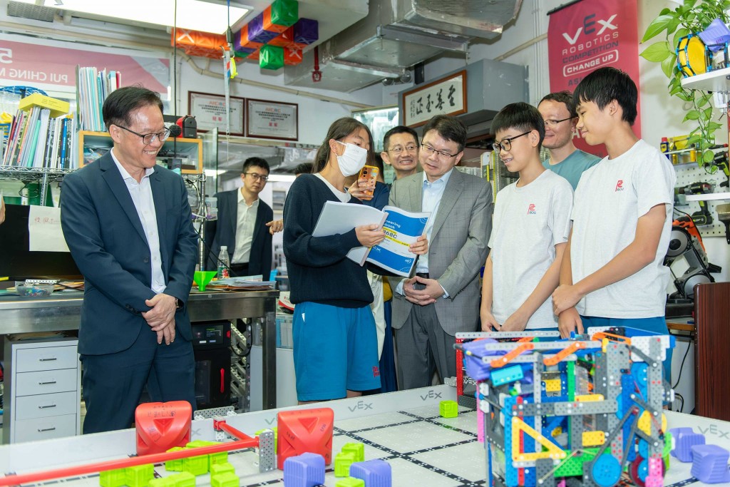 國家教育部教育考試院于涵副院長今天率領團隊到訪本校,高錦輝校長和陳敬濂副校長等熱情接待。訪問期間,嘉賓們深入瞭解到本校在中華文化教育和創新科教領域的現況,並與同學們交流,特別是VEX機器人小組的同學們展示了他們的作品並講解工程筆記,獲嘉賓們高度讚賞。
