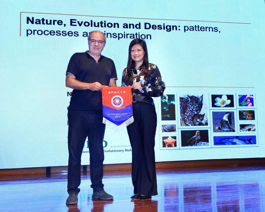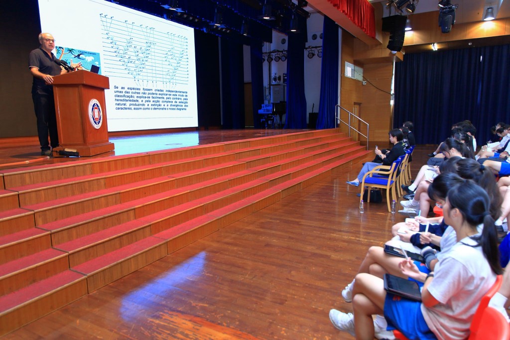 生物學家、葡萄牙波爾圖大學演化與保育生物學教授Dr. Nuno Ferrand de Almeida獲澳門大學邀請到澳訪問,並於10月30日下午到訪本校,以「自然、演化和設計」(Nature, Evolution and Design: patterns, processes and inspiration)為題,帶領高三同學踏上一段生命演化之旅。