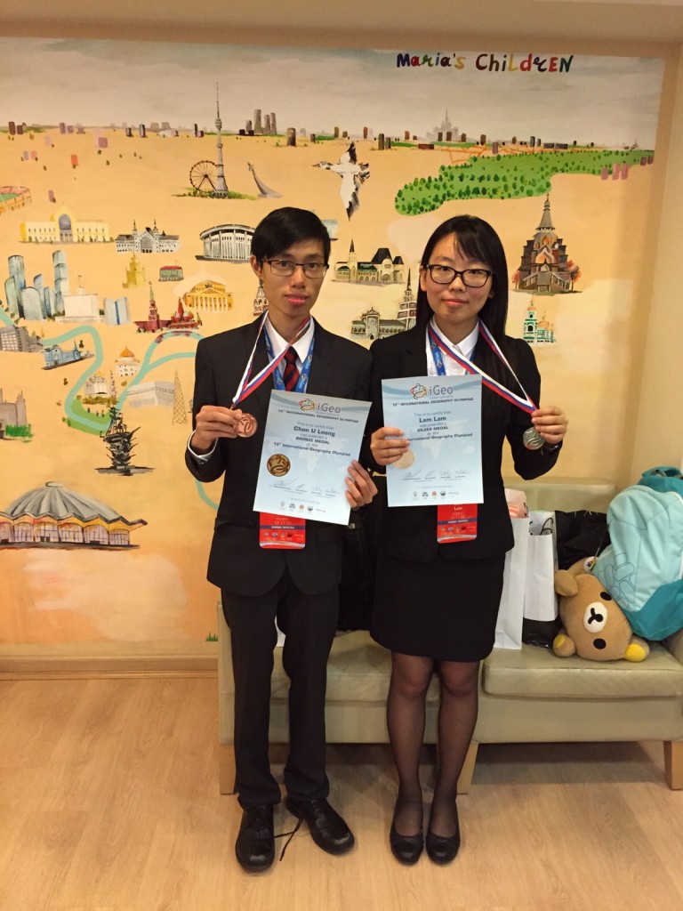 日前,本校高中三位同學代表澳門遠赴俄羅斯參加國際地理奧林匹克競賽,其中林嵐和梁峻瑜同學分別獲得個人獎銀牌和銅牌,梁子悠同學則獲入選獎,此獎項是世界級賽事,而澳門亦是首次在此項比賽中獲獎,成績卓越,為澳爭光。