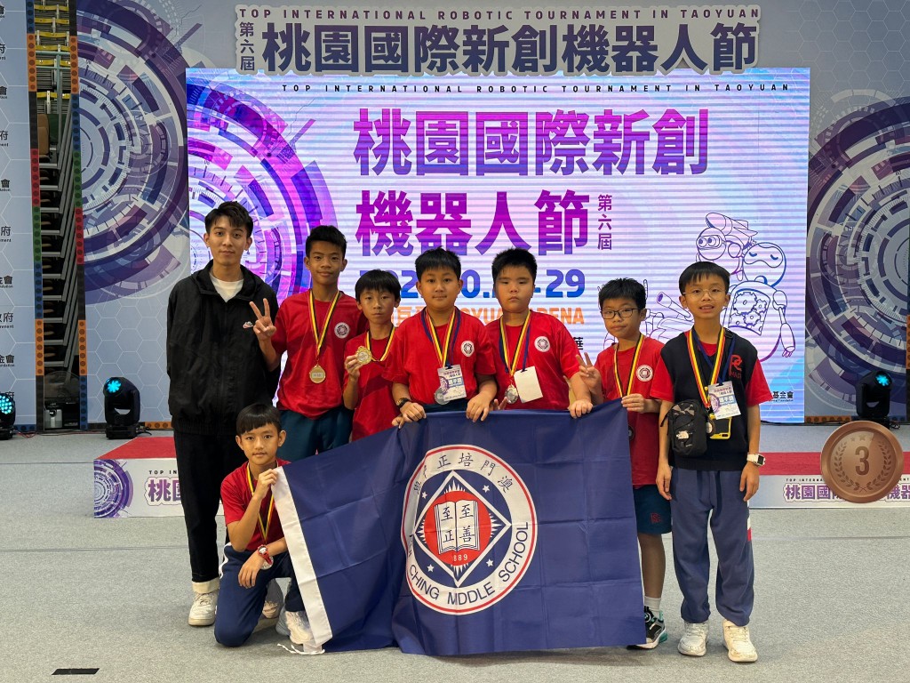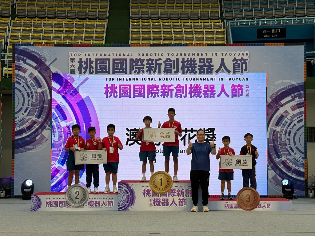 2023年10月28-30日,澳門培正中學7名小學同學赴桃園參加2023第六屆桃園國際新創機器人節的TIRT相撲車機器人輕量級競賽。競賽隊伍由1-3名成員組成,每隊使用一台相撲機器人與另一隊對戰形式作戰,限定時間內將對方的相撲機器人推場外即為勝方。競賽除考驗同學程式編寫之外,還要兼顧車體組成的空間結構設計。經過激烈比拼,我校學生勇奪以下獎項: