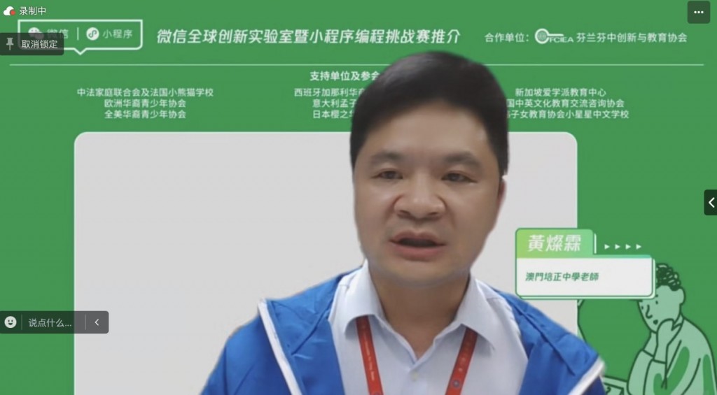 本校資訊科技科黃燦霖老師應邀以線上形式出席第五屆芬蘭赫爾辛基教育周活動,並在10月31日的主題活動中分享他作為帶隊老師參加微信小程式編程挑戰賽的感受與經驗。
