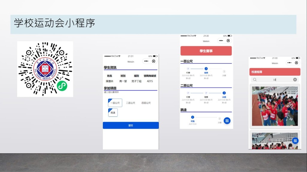 在分享中,黃老師闡述了微信小程序的核心就是WebApplication,而且它又是免下載安裝,隨即使用,正正是彌補了WebApplication在實踐中所面對的困難,非常值得在教育中推廣。黃老師亦介紹了本校的第一個上線小程序「校運會小程序」的創作理念和功能分享,受到了與會人仕的熱烈讚賞。