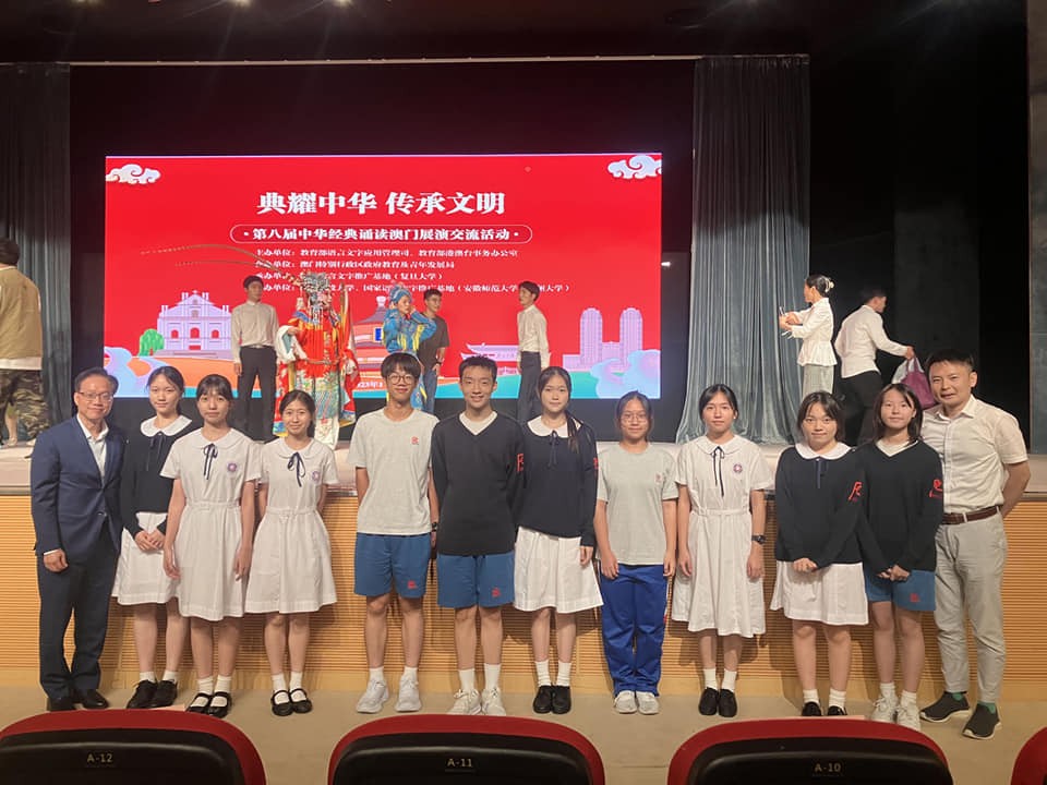 國家教育部語言文字應用管理司及國家教育部港澳台事務辦公室主辦,澳門教育及青年發展局合辦,復旦大學承辦之「2023中華經典誦讀澳門展演會」於今日下午在澳門科技大學舉行,本校張柏恩老師帶領高一高二同學參加是次活動。